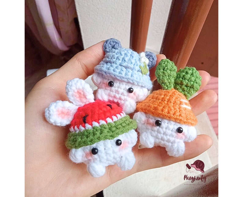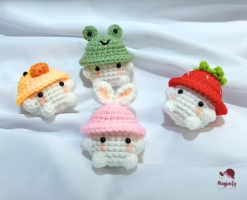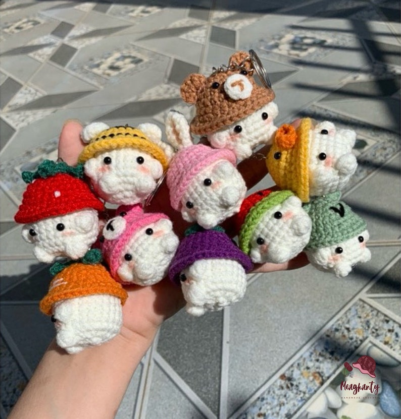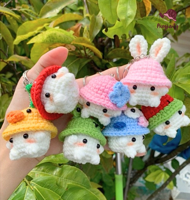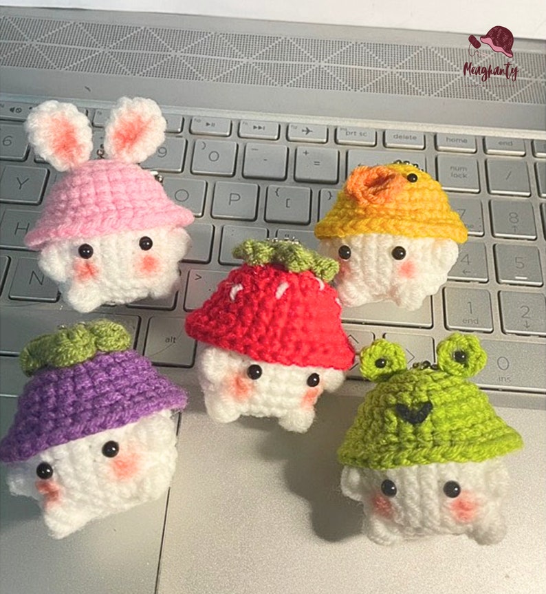 Amigurumi Crochet Pattern for Mini Mushroom Keychain – Bunny Hat Optional – 5 Languages Crochet Pattern