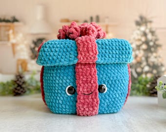Bundle: Big and Mini Christmas Present Crochet Pattern, Plush Presents with Removable Lid