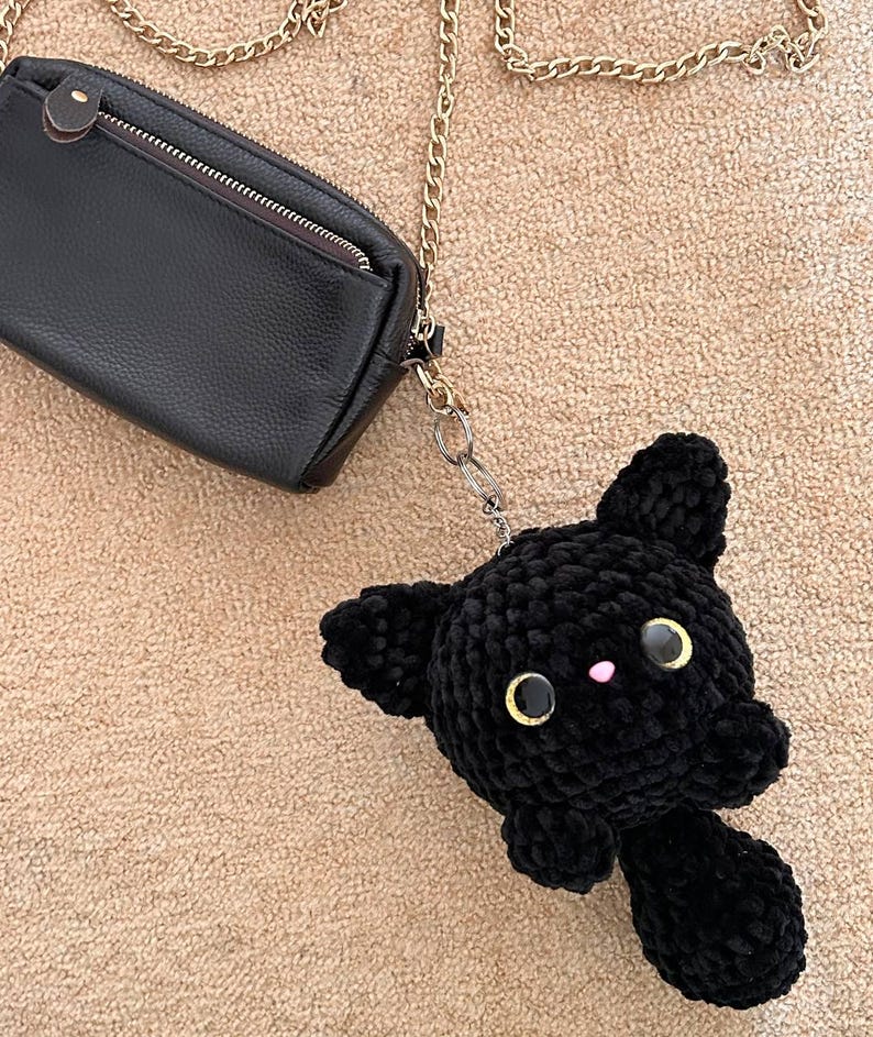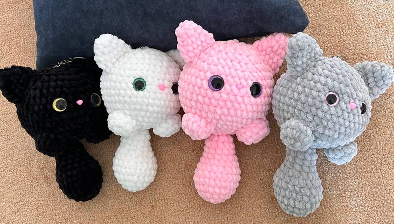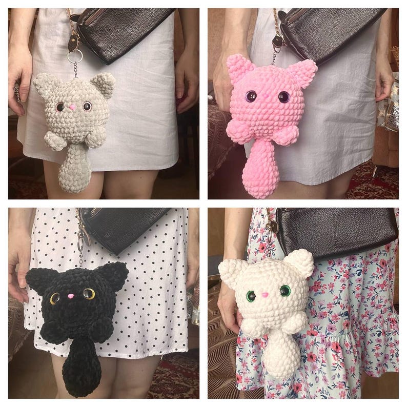 Crochet cat keychain pattern Amigurumi kitty pattern Cute key ring pattern
