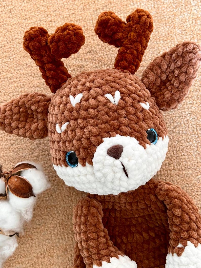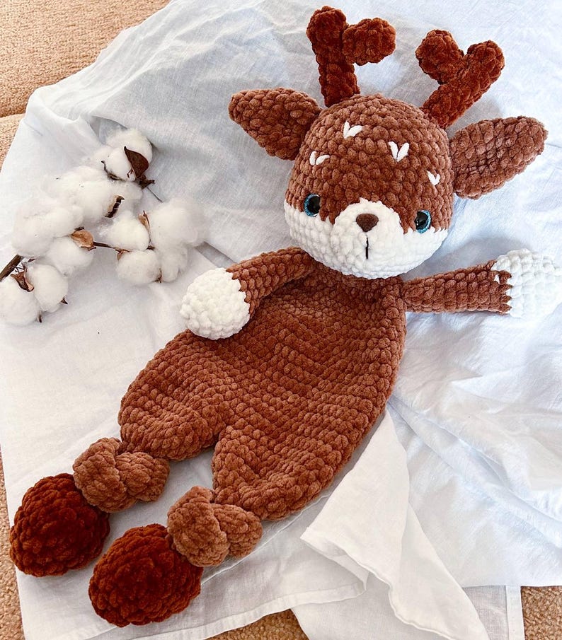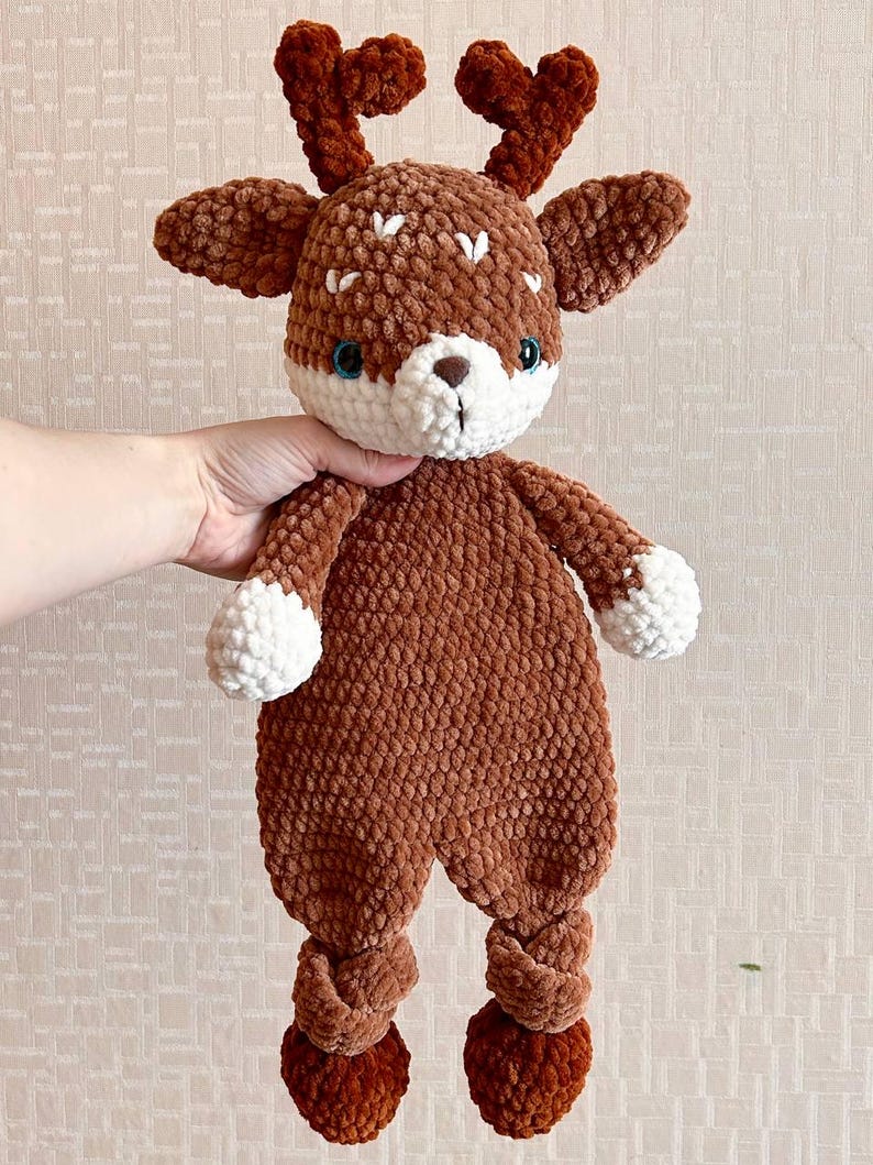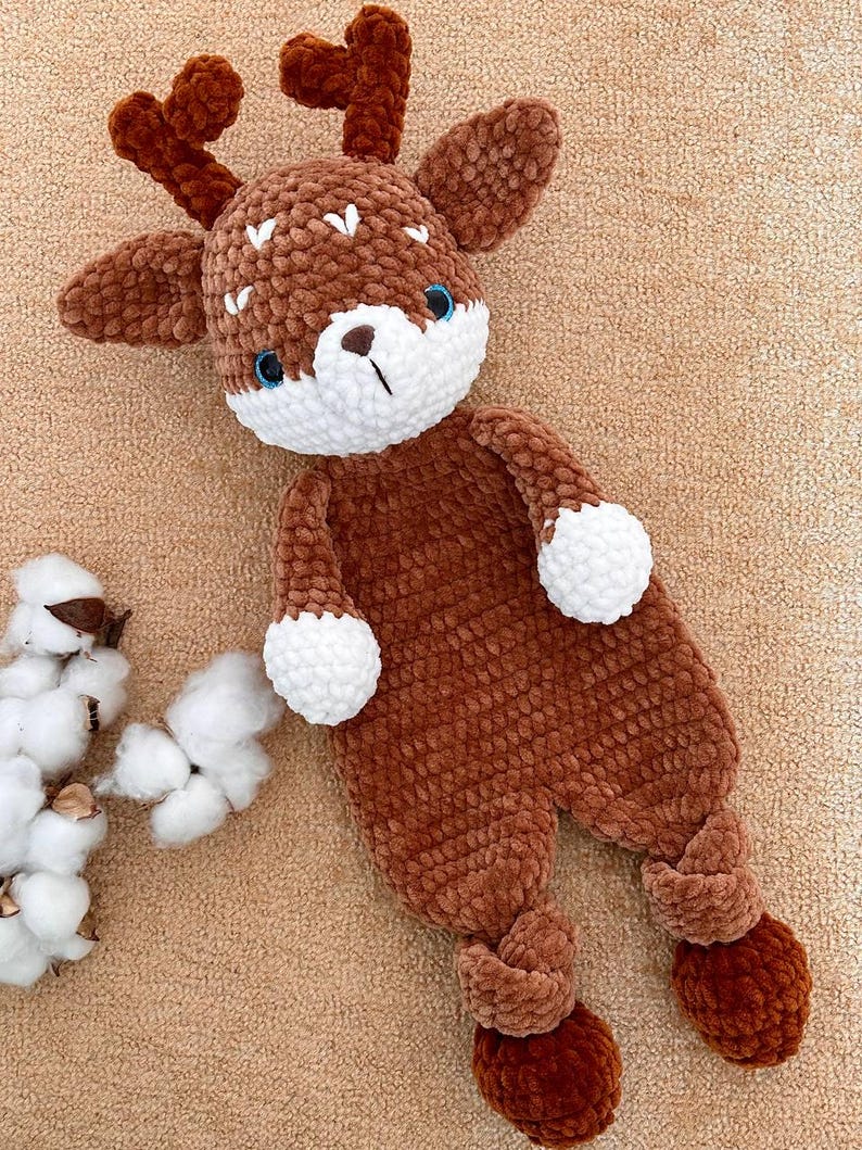 Crochet deer snuggler pattern Deer lovey pattern Cute animal plushie pattern