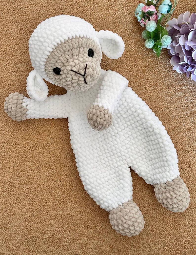 Crochet sheep snuggler pattern Lamb lovey pattern Animal baby cuddle toy pattern