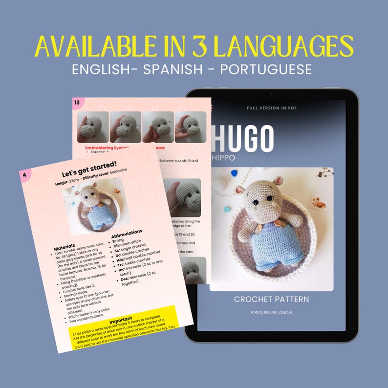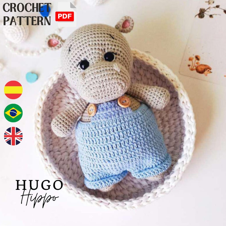 Cute hippo crochet pattern, Amigurumi soft toy, Crocheted Hippopotamus
