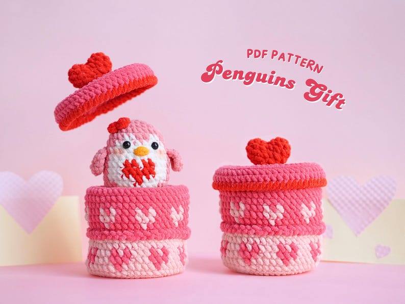 Heart Penguin Gift Crochet Pattern, Valentine Crochet Patterns, Valentine Pattern Tutorials, Penguin Crochet Pattern