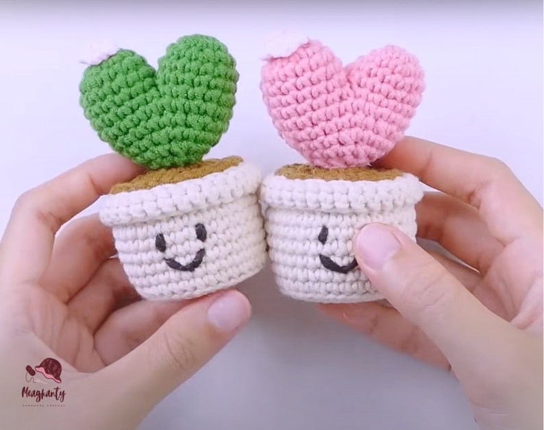 Heart Plant In A Pot Crochet Pattern, Anniversary Gift Crochet Pattern