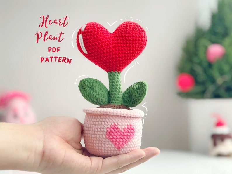 Heart Plant in a Pot Crochet Pattern, Valentine Crochet Pattern