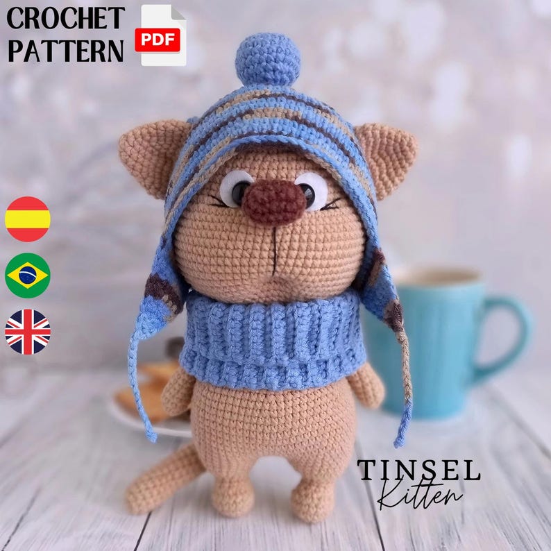 Hooded Cat Crochet Pattern, Christmas Winter Amigurumi Kitten