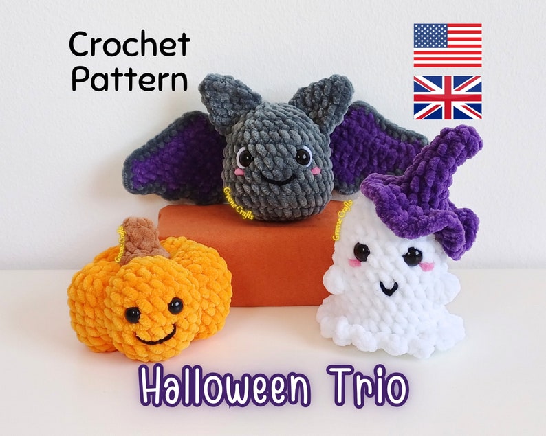Mini Ghost, Pumpkin and Mini Bat Crochet Pattern, 3 in 1 Crochet Toy Pattern Bundle for Halloween, Fast and Easy Crochet Gifts for Halloween
