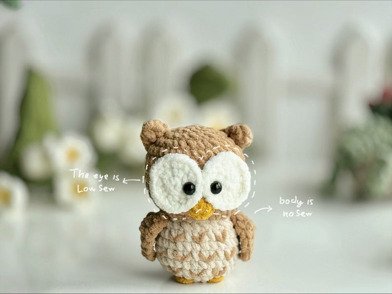 Owl Low Sew Crochet Pattern, Low Sew Amigurumi Crochet Patterns, Crochet Pattern, Plushie Pattern