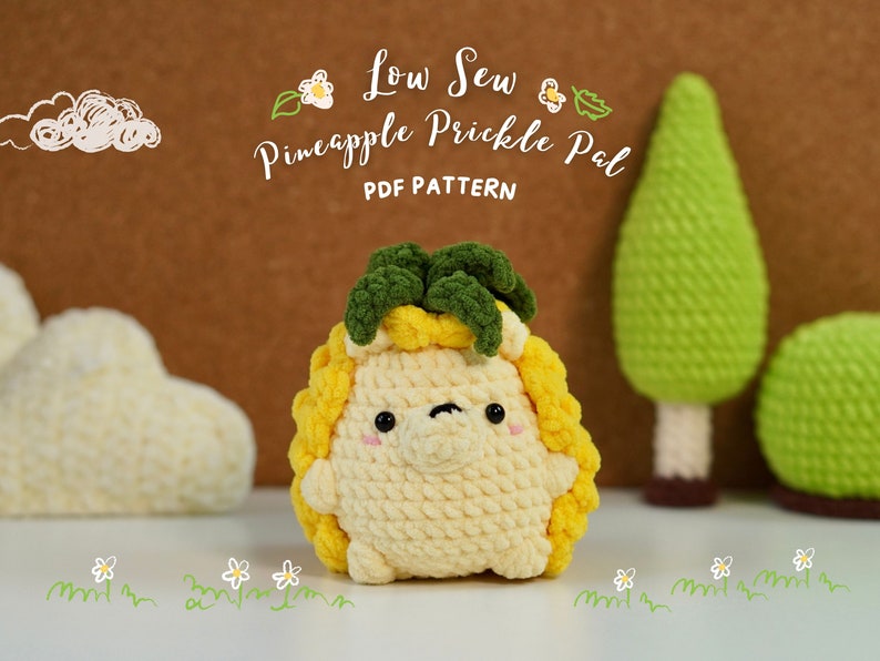 Pineapple Prickle Pal Hedgehog Crochet Pattern, Amigurumi Hedgehog Crochet Patterns, Low Sew Crochet Pattern