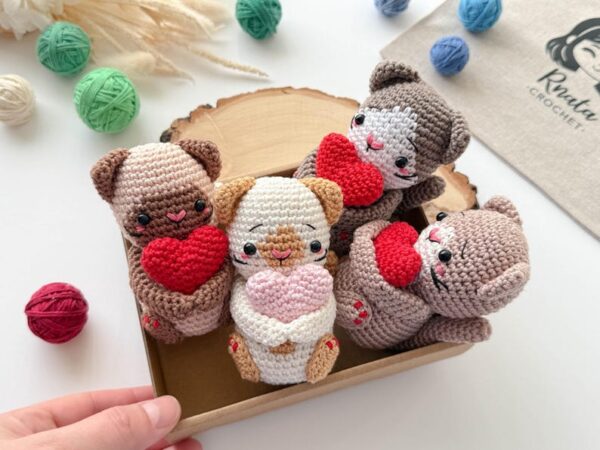 Crochet Mini Cats 7 in 1,Pattern, English, French only,Cats with heart, Valentine day