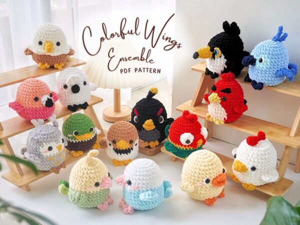 15in1 Colorful Wings Ensemble Amigurumi Crochet Pattern Bundle, Birds Pattern, Chickens Pattern